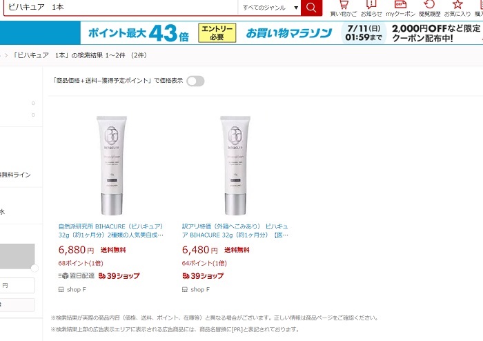 Amazonだと、ビハキュアの場合は送料が無料だったり、