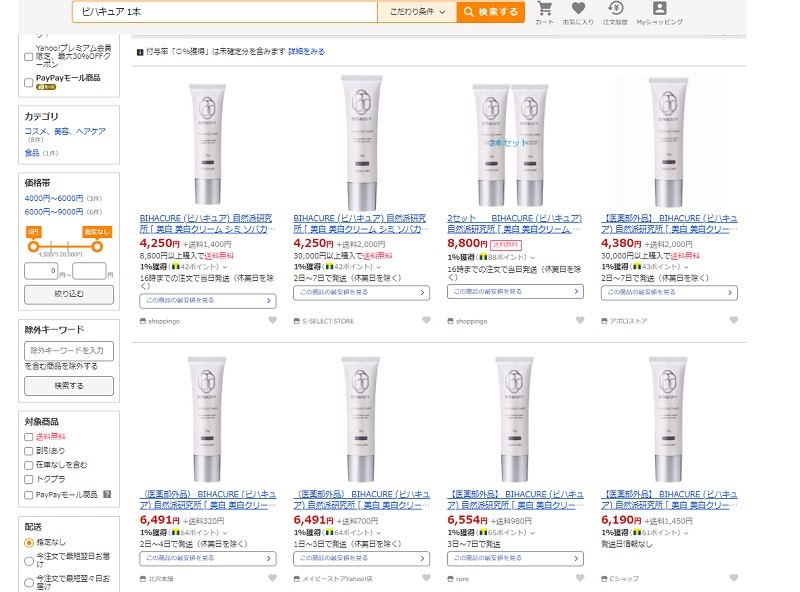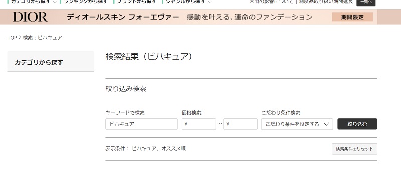 ビハキュアは、大手コスメセレクトショップでも販売されていませんでした。
