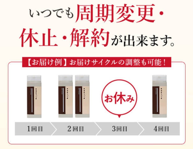 - いつでも解約OK。次回お届け日の12日前までに連絡で解約できる。