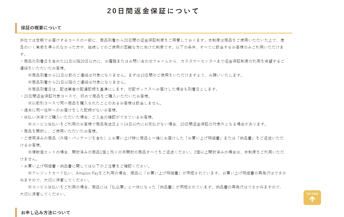 ・20日間返金保証対象コース、そして商品を初めてご購入した人、そして過去同一住所にお届けがないこと。