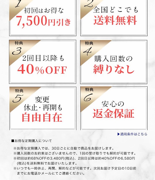 しかも、2回目以降の購入でも約40%OFFの6,580円で購入できます。